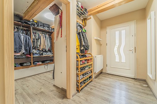 Koupelna nabízí sprchový kout i vanu, velké úložné skříňky a pračku se sušičkou lze uspořádat nad sebe; toaleta je samostatná. V obytných místnostech je kvalitní vinylová podlaha. V kuchyni, v koupelně, na WC, v zádveří a v technické místnosti je keramická dlažba. Ze šatny je přístup na půdu využívanou jako praktické úložiště.
